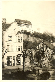 Das erste Ladenlokal in der Königserle, Warstein. In der Leihbücherei wurden auch Schreibwaren, Tabakwaren und Lotto-Totto von den Firmengründern Karl und Irmgard Budeus vertrieben.